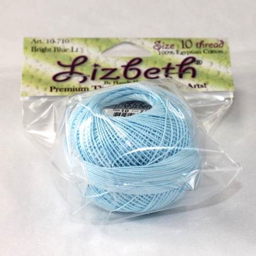 Lizbeth thread, 100% Egyptian Cotton, 6-cord cordonnet, super-combed, gas-singed for outstanding body, double mercerized, and color fast.