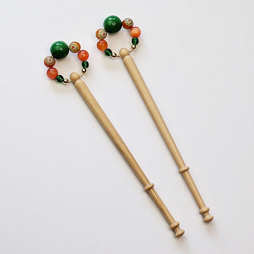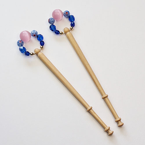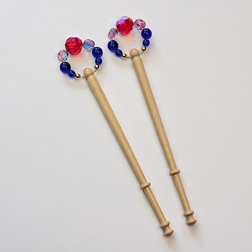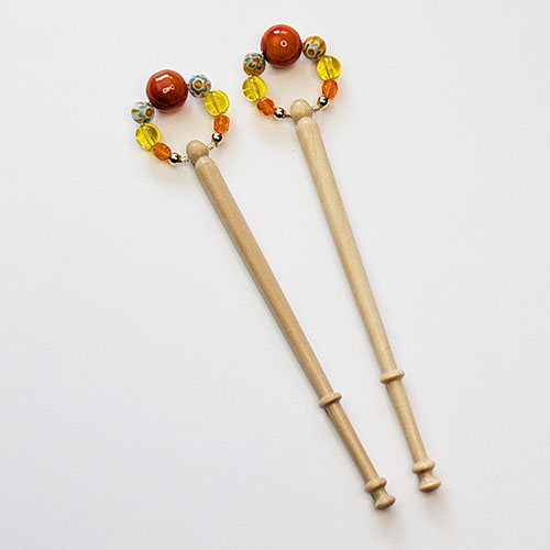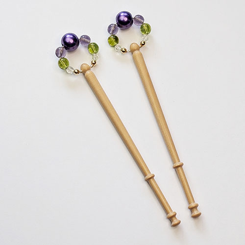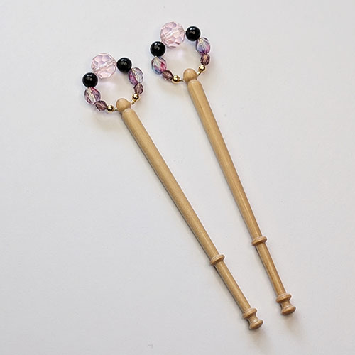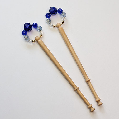 The beads used are the same as the ones used for our Violetwood and Satinwood Spangled Bobbin Pairs. The difference in price is due to the variation in the cost of the types of wood.